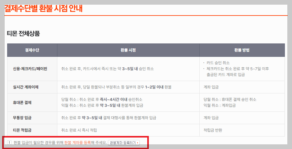 티몬 위메프 환불방법