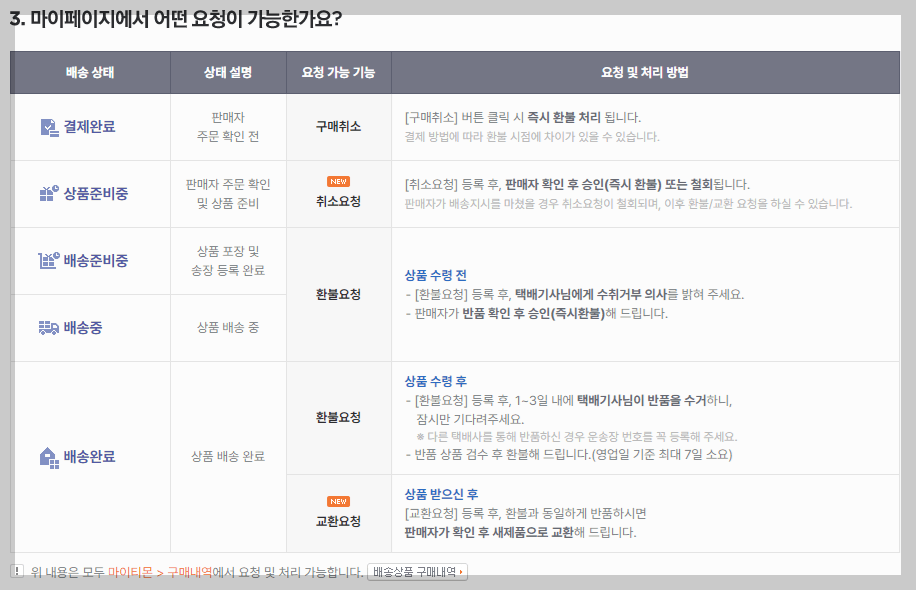 ✔ 판매자가 배송지시를 마쳤을 경우 취소요청이 철회되면, 이후 환불/교환 요청을 하실 수 있습니다.