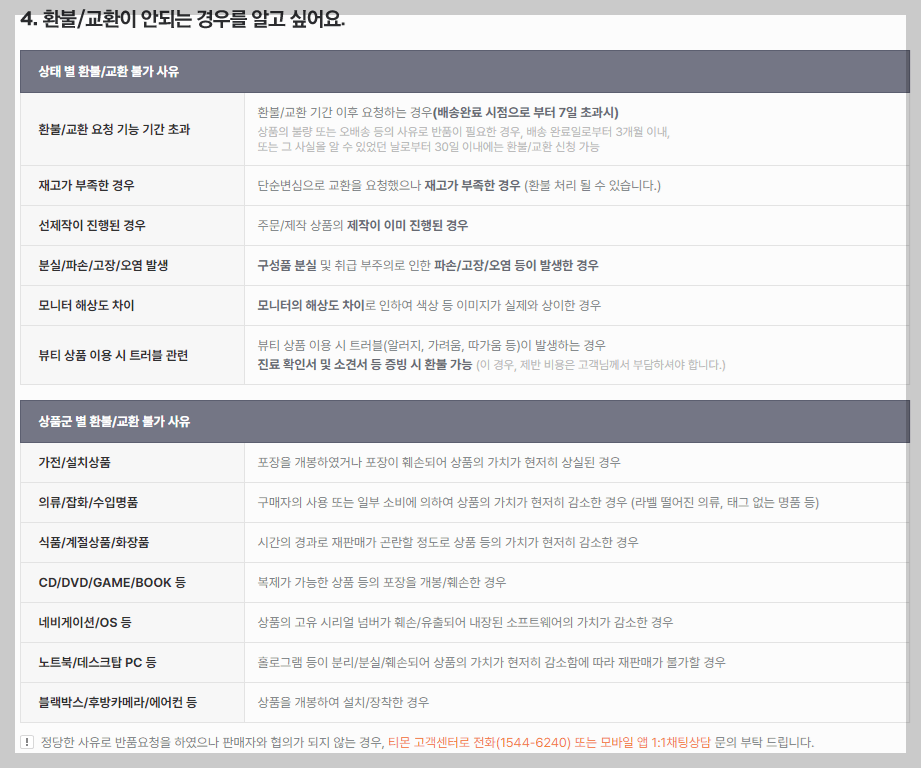 ✅ 상품군 별 환불 / 교환 불가 사유
