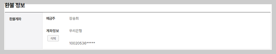 ✅4. 환불정보에 은행, 계좌번호 입력하시면 완료입니다.