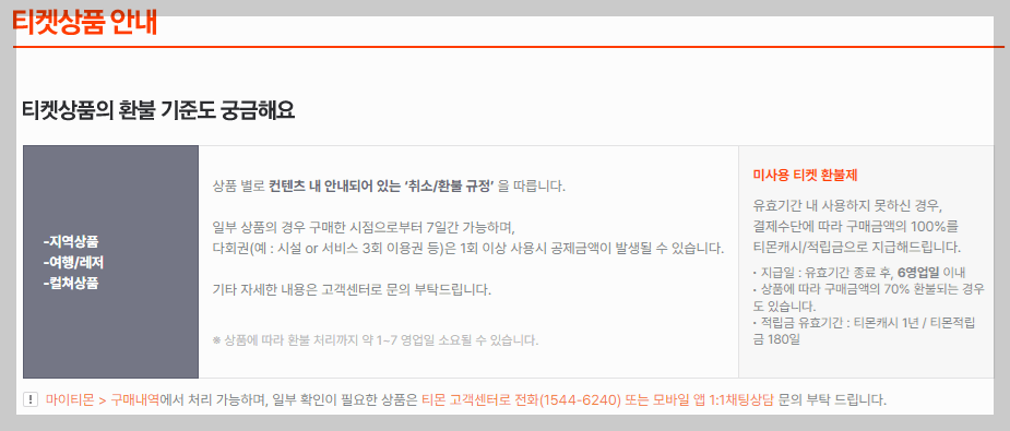 유효기간 내 사용하지 못하신 경우, 결제수단에 따라 구매금액의 100%를 티몬캐시/적립금으로 지급해 드립니다