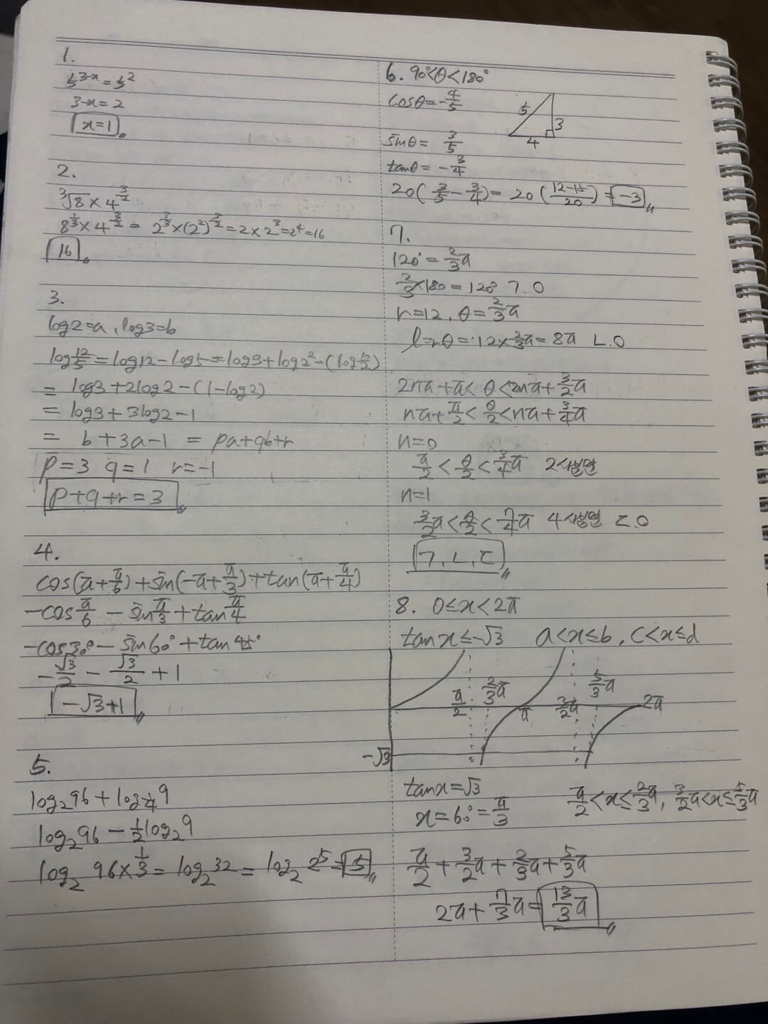 호도법으로 표시한 각도를 삼각비를 이용해서 풀 수 있는 물어보는 문제입니다.