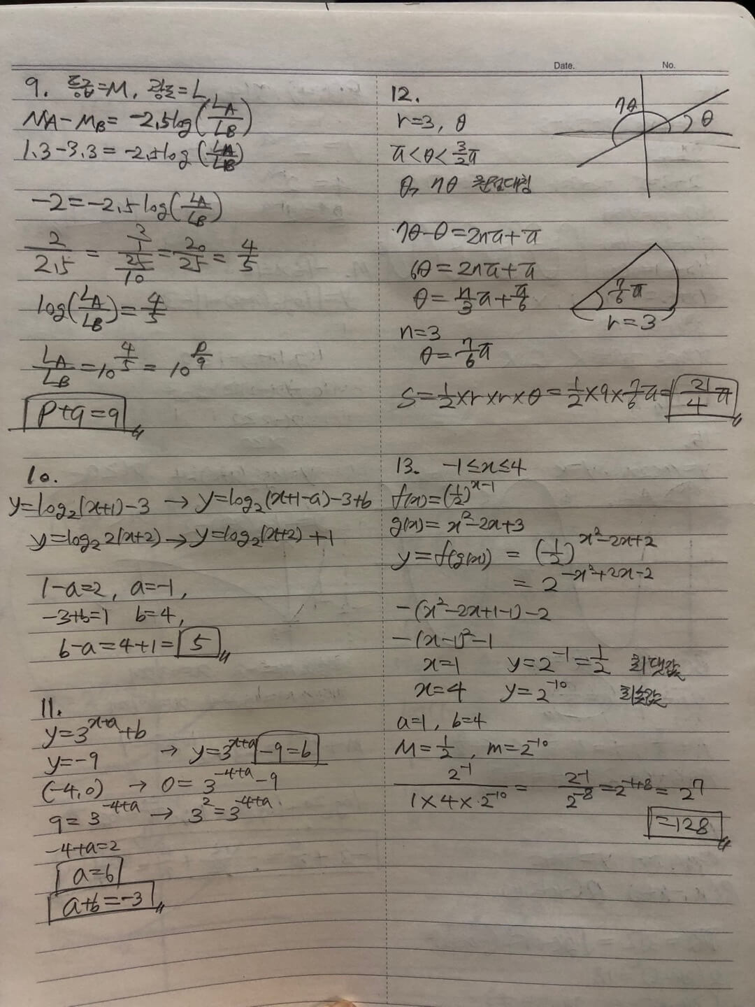 12 번 개념 : 부채꼴의 넓이, 호도법, 두 각의 동경의 관계